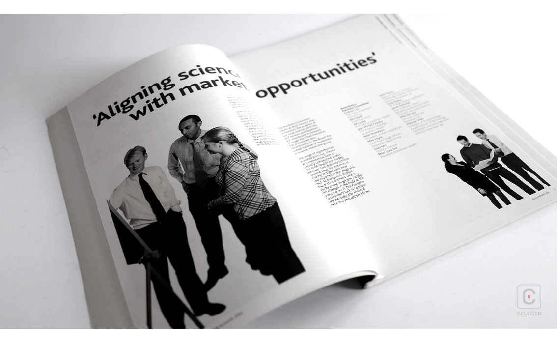 AMERSHAM (2002) Of all the reports featured here, the Amersham report leans more heavily on its captions to deliver the message relevant to the content, rather than its imagery. The imagery generally comes off as stock photographs graded in black and white and as a result, can feel slightly inauthentic.