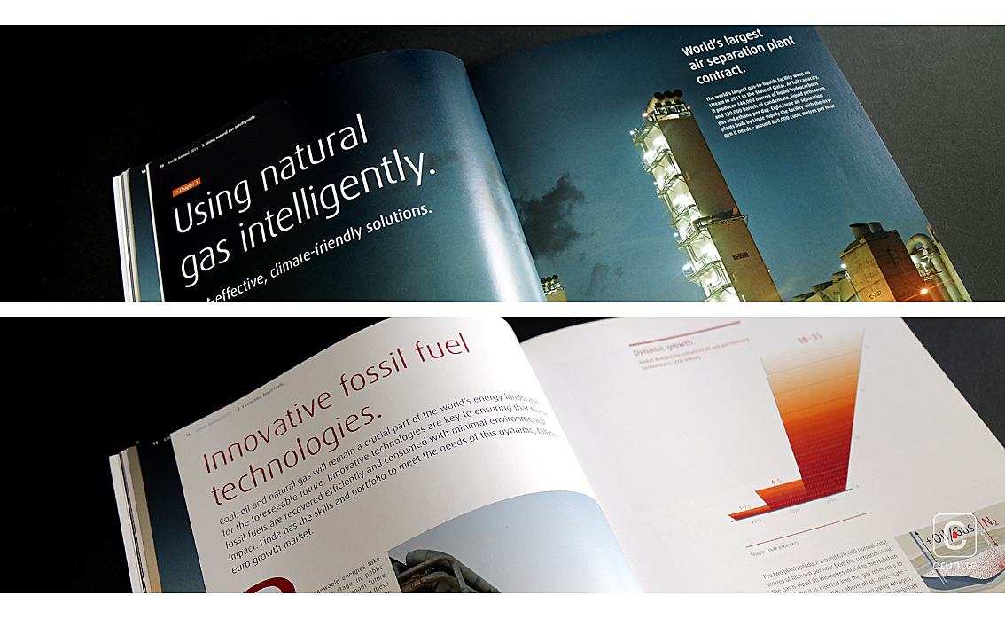 Linde is the world’s largest industrial gas company and while the cover of their 2011 report may be unremarkable, the use of photography in the book is worth studying.