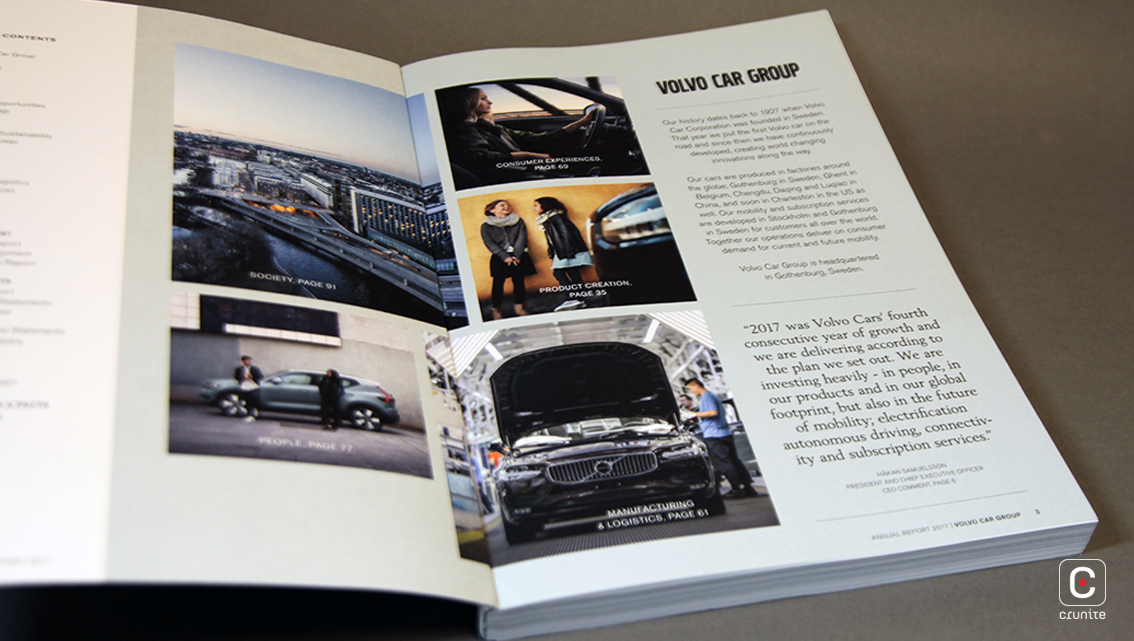 Simply beautiful. The Volvo Car Group Annual Report 2017 uses great colour, typography and photographs as long as you don’t include the cover in that analysis.