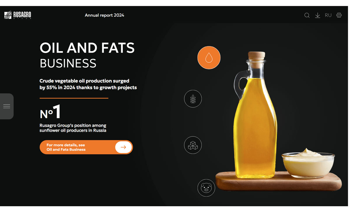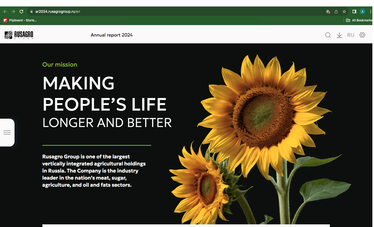 Rusagro is one of Russia’s largest agricultural holding companies. It specialises in the production of sugar, pork, oil, fats, and agricultural crops. Its operations span Russia and 49 other countries.