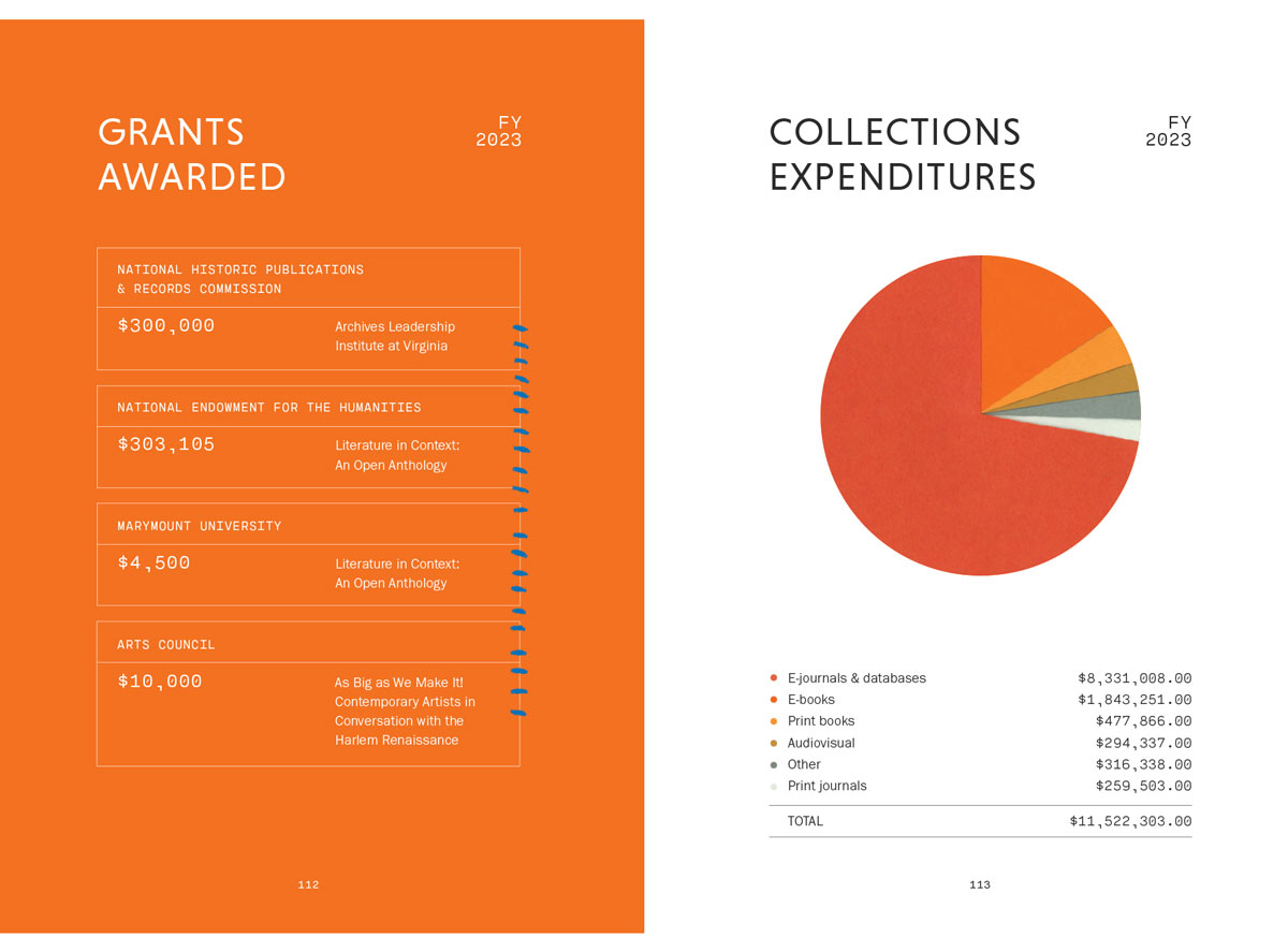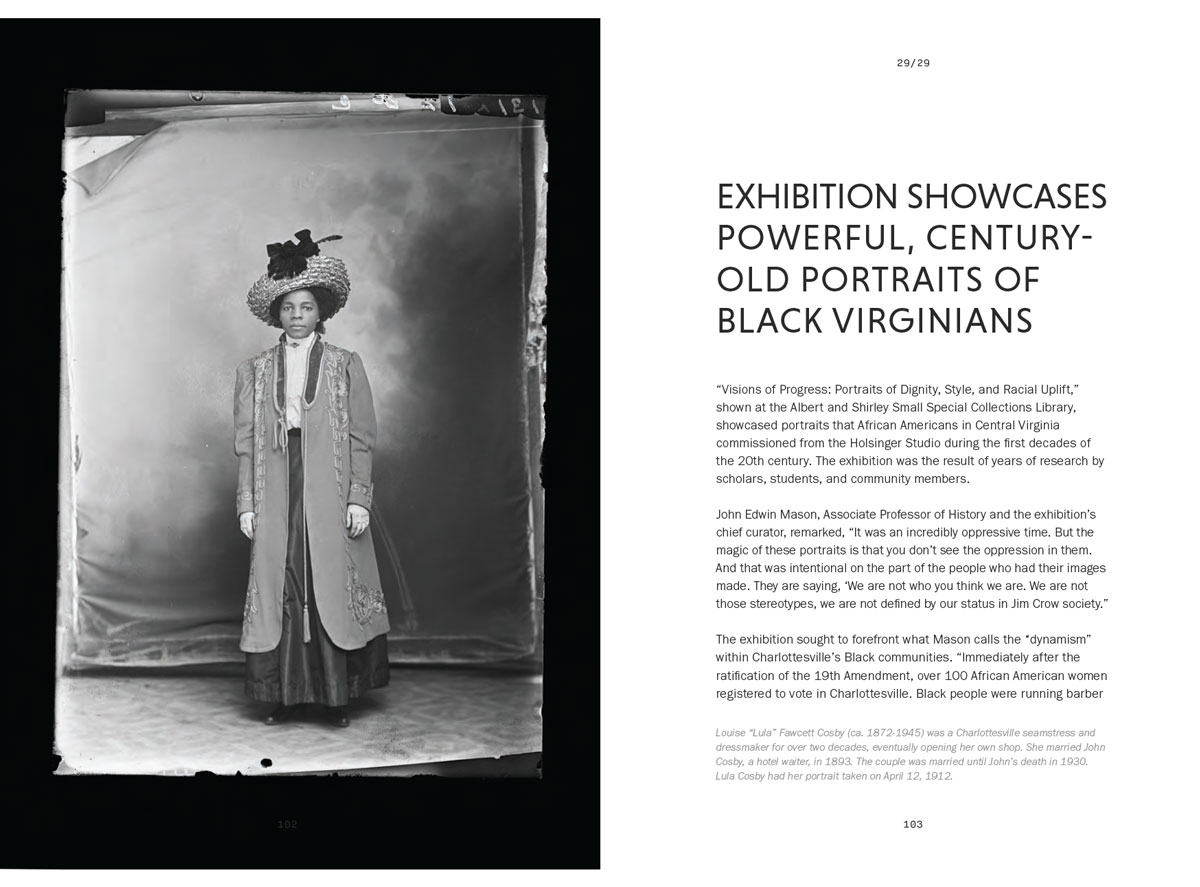 The report is built around 29 short pieces of writing that celebrate recent renovations, the work of the library, and aspects of its collection that celebrate women and black Virginians.