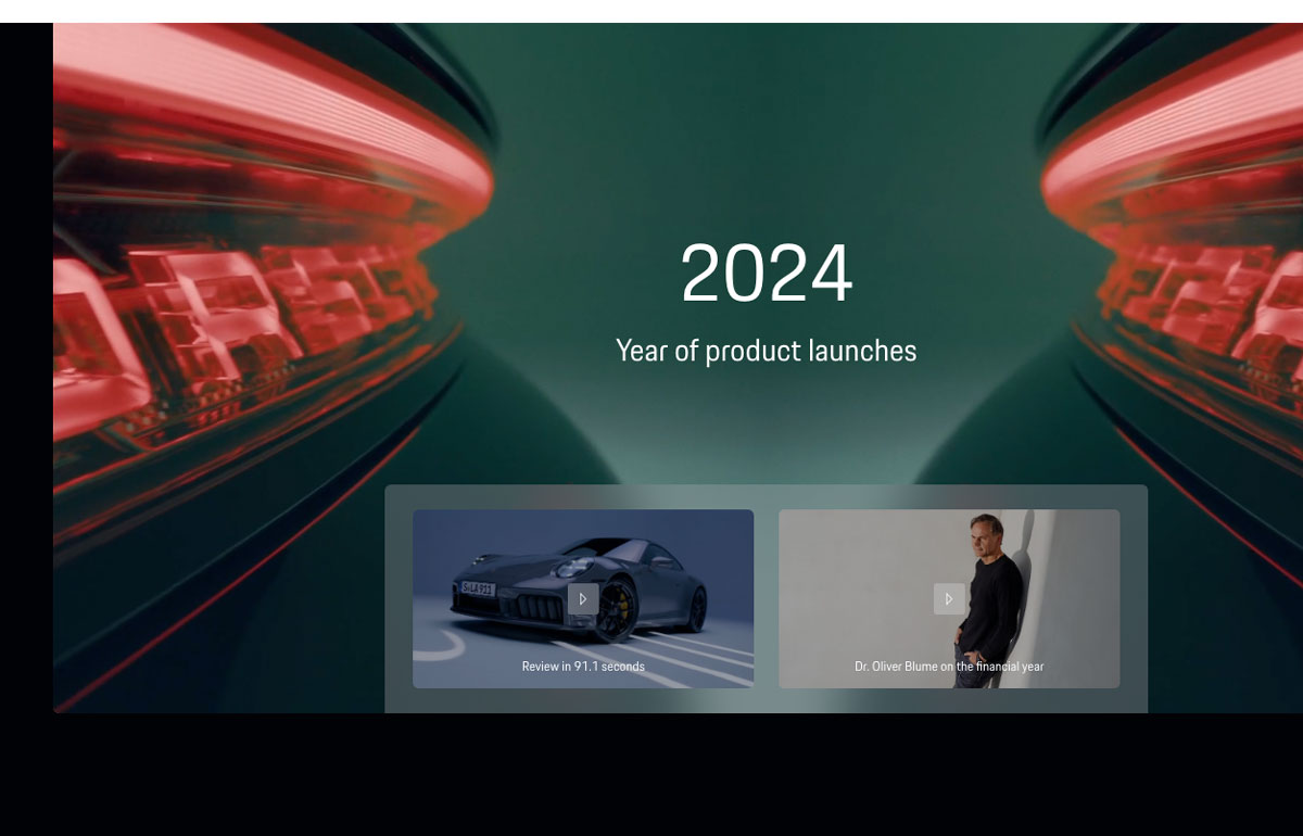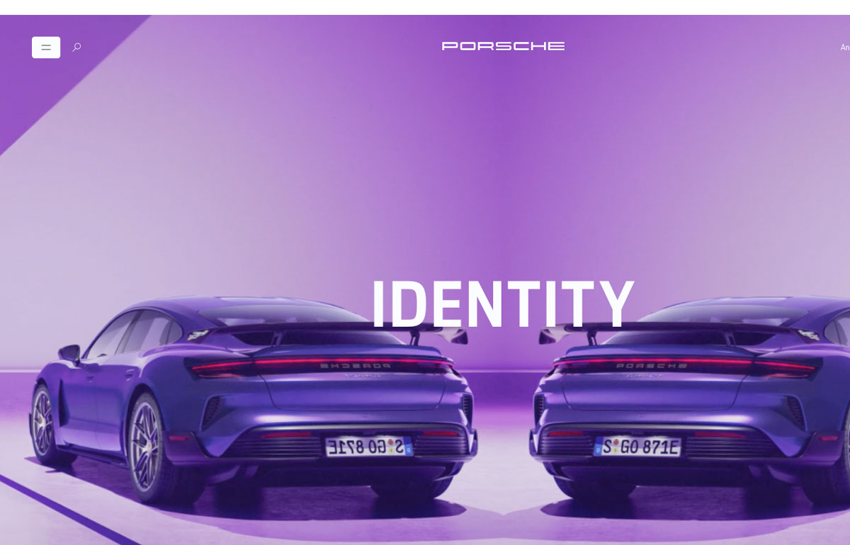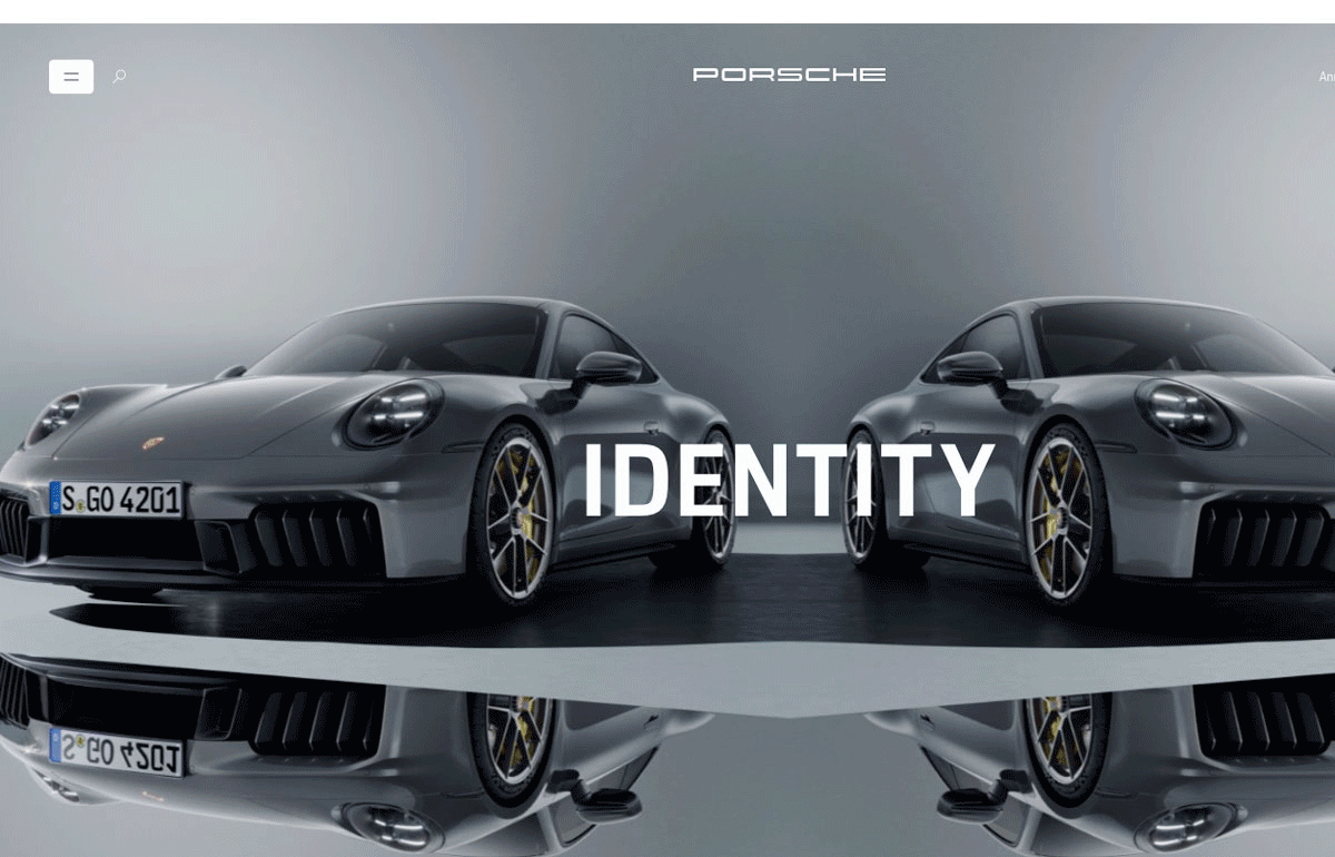 Porsche’s 2024 annual report takes the form of a website built around the theme of identity. The site examines this theme visually, through the use of mirrored images of cars.