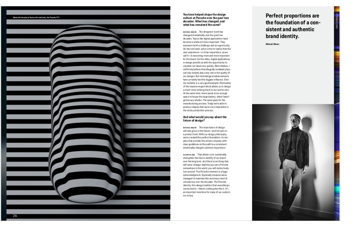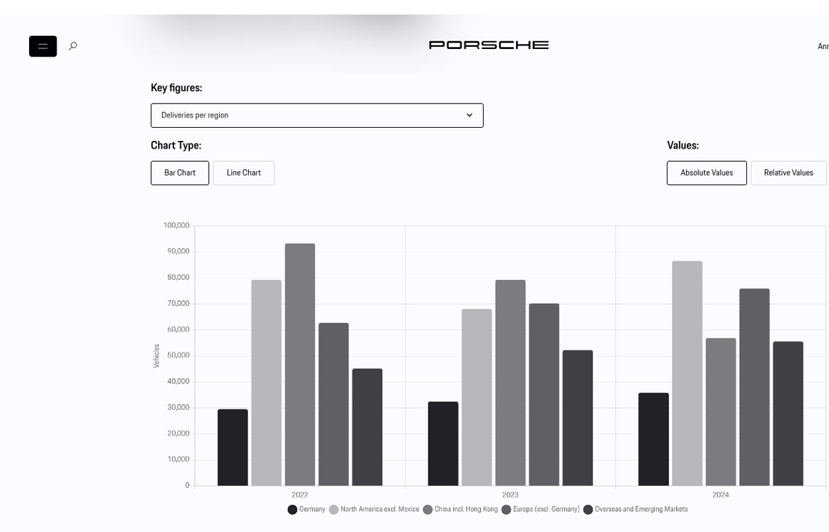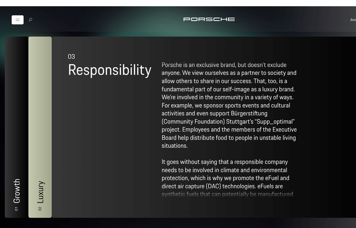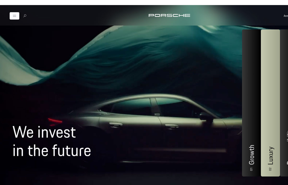 Porsche’s 2024 annual report takes the form of a website built around the theme of identity. The site examines this theme visually, through the use of mirrored images of cars.