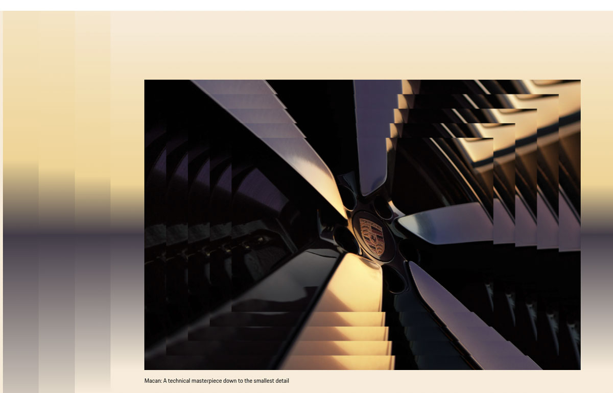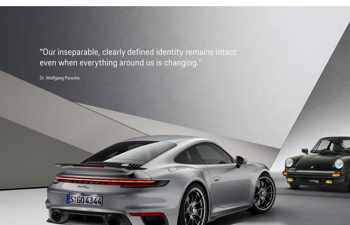 In one notable mirroring, the site shows a contemporary model Porsche with an older edition of the car. This stands out because the concept of identity is being considered through time. It’s an effective trick, highlighting the similarities in design through time.